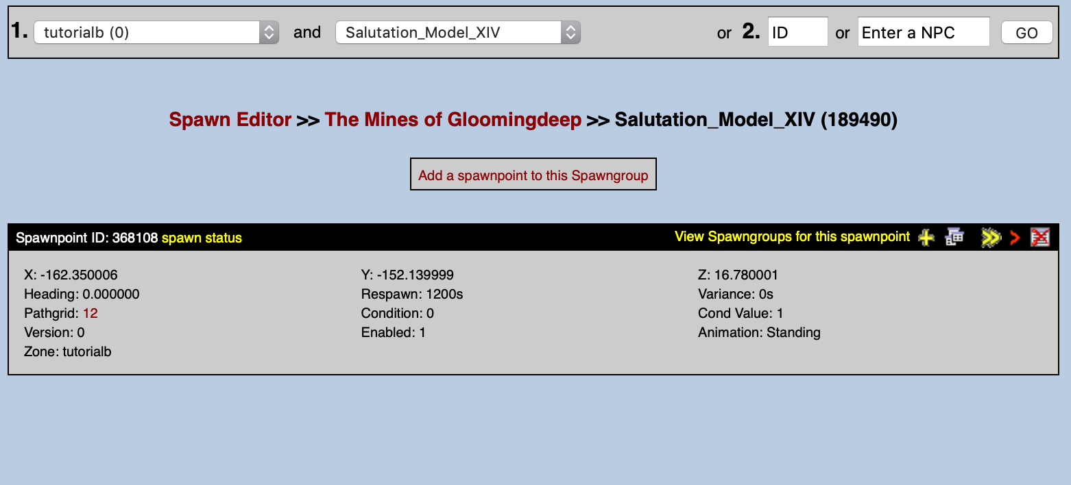 Choose the link in yellow text that says View Spawnpoints (0) for this Spawngroup.