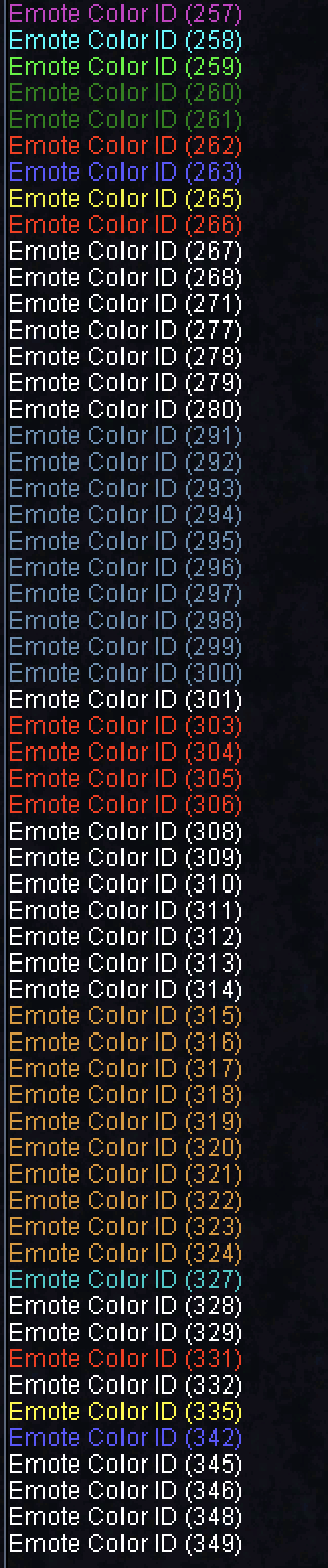 $client->Message($i, "Emote Color ID (" . $i . ")");